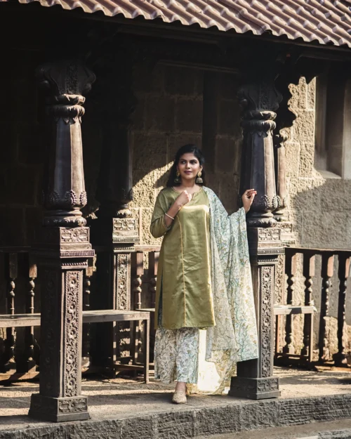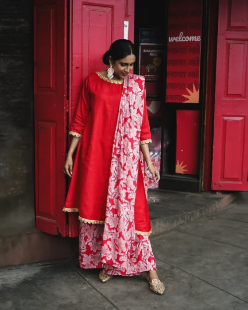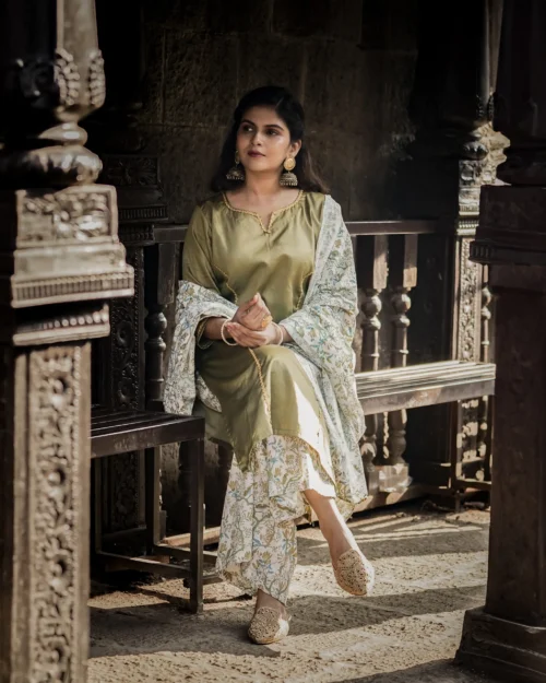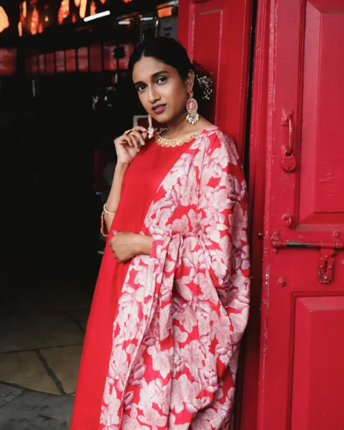 Embrace timeless elegance with this Roman silk Gher suit in a soft lavender shade, complemented by a delicate pink organza dupatta. The luxurious Roman silk fabric drapes beautifully, while the gentle lavender hue adds a touch of sophistication to the ensemble. Paired with the lightweight pink organza dupatta, this set creates a harmonious blend of color and texture. The Gher silhouette offers graceful movement, making it perfect for both festive celebrations and special Festivals.