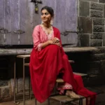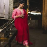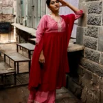 “Step into timeless elegance with our V-neck georgette dress in a captivating shade of pink. This flowy dress features delicate lace work that enhances its charm, making it perfect for any special occasion. Paired with flared-bottom palazzo pants, it offers an airy, graceful silhouette that exudes sophistication. The matching dupatta adds an ethereal touch, completing the look with effortless grace. Embrace this ensemble for a blend of classic design and contemporary flair that ensures you stand out with poise and confidence.”